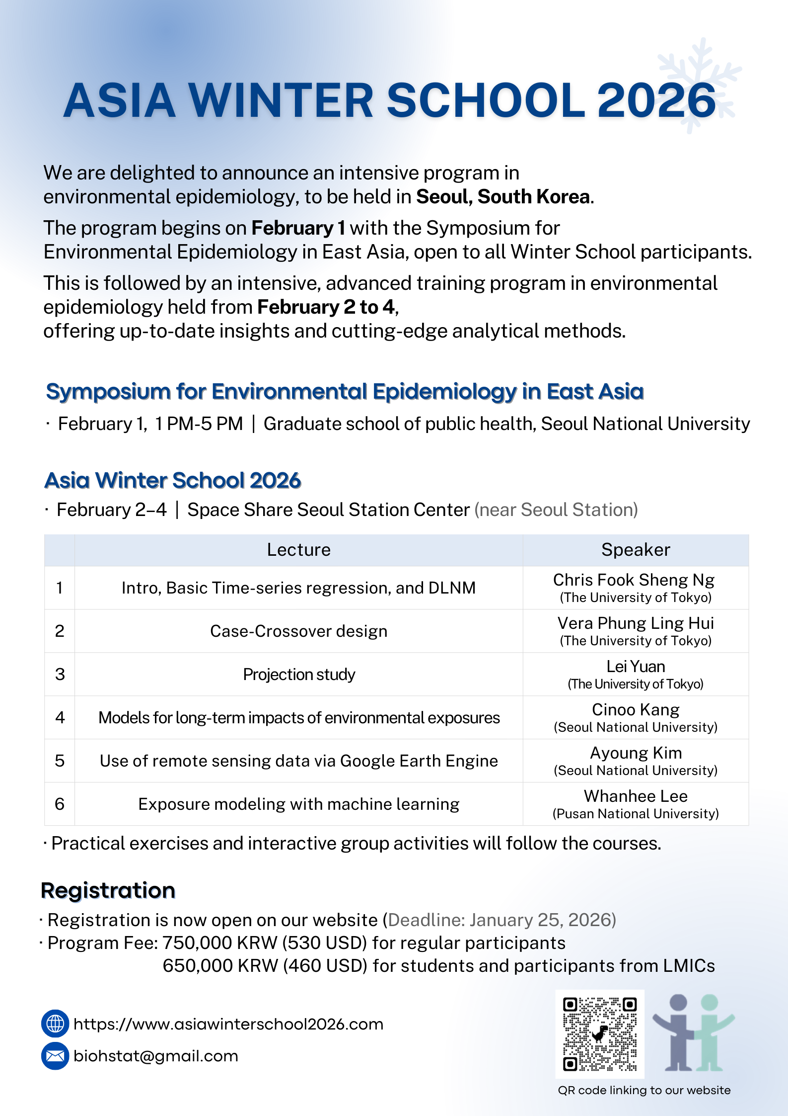 [홍보] Symposium for Environmental Epidemiology and the 2026 Asia Winter School