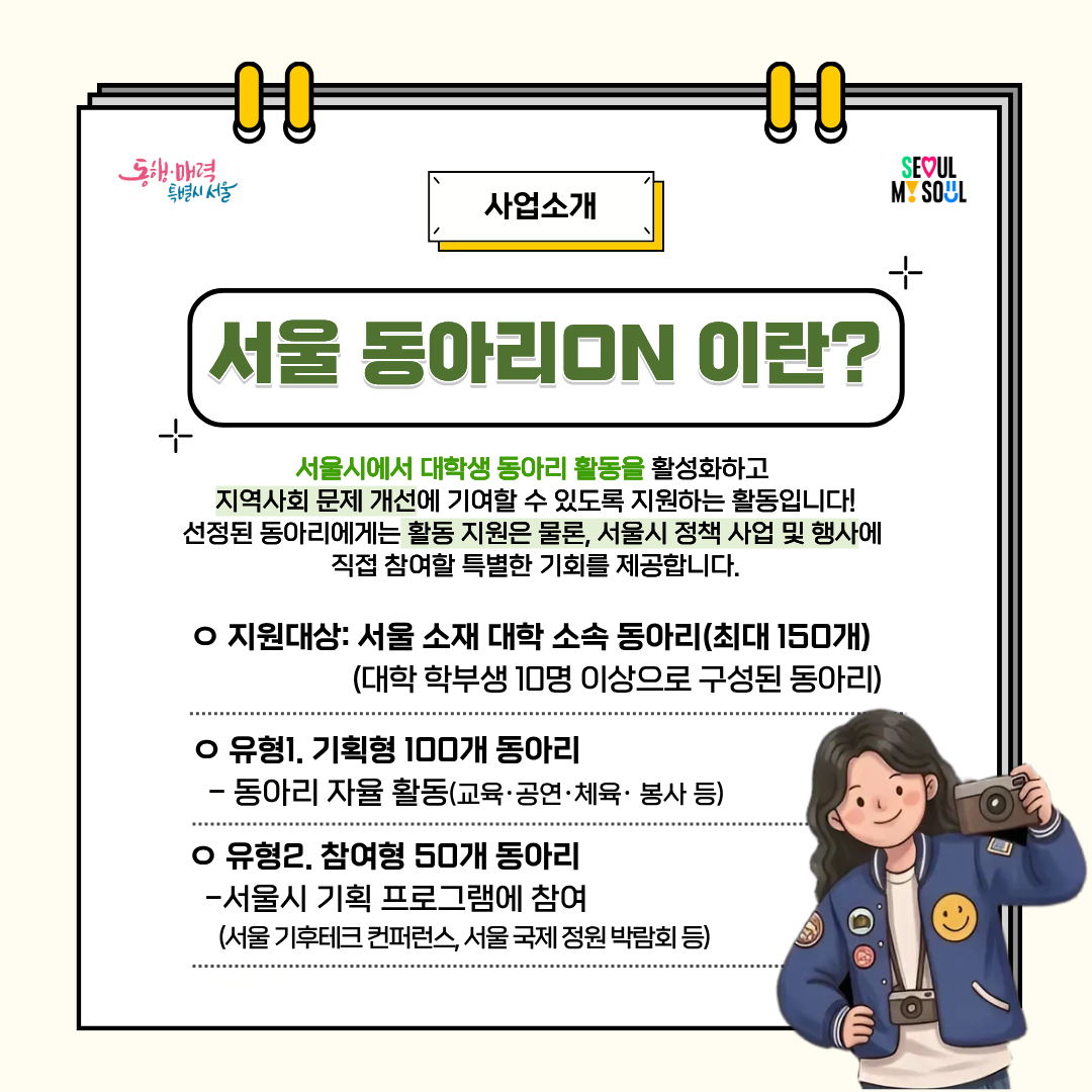 「2026년 서울 동아리ON(대학생 동아리 지원)」참여 동아리 모집 홍보