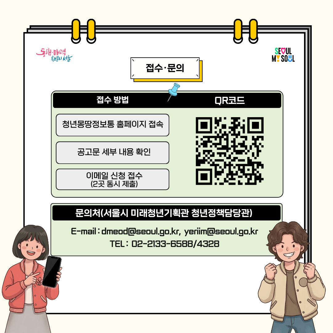 □ 문의처 : 서울시 미래청년기획관 청년정책담당관(02-2133-6588/4328)
